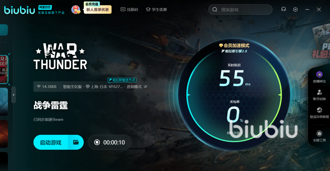 《战争雷霆》服务器加速方式大家知道了吧,好玩且选项多的游戏,想要获得的服务好,肯定是需要biubiu这样全面的加速器了。面对选项有点抉择困难,那就把决定权交给biubiu,它自动给我们选择最好的加速节点以及通道,各位就放心的享受更流畅且稳定的网络开玩吧。