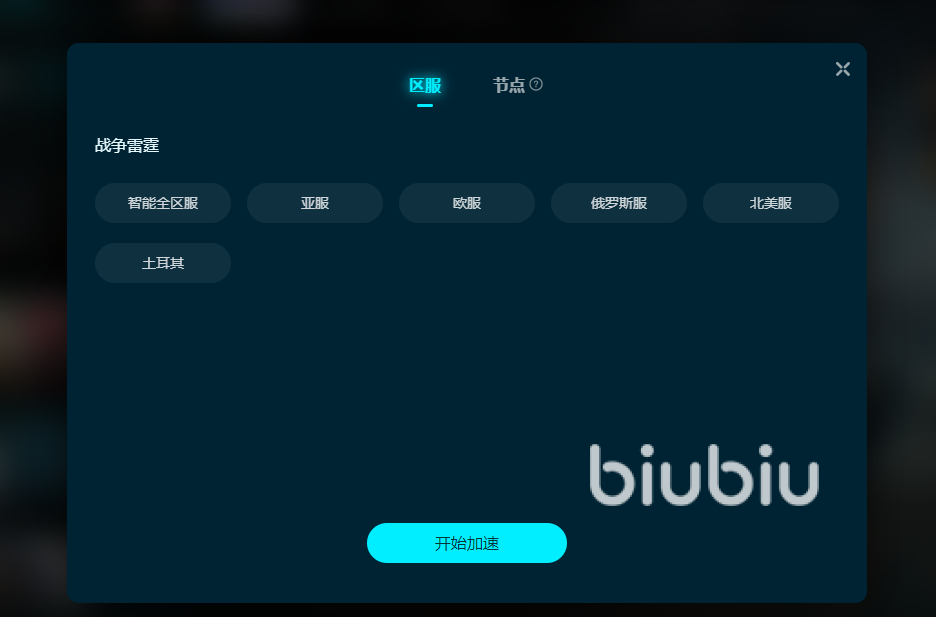 要是真的不知道选择,那直接让biubiu的智能节点发挥作用,它有个智能全区服的功能的,不管我们玩亚服,欧服还是俄罗斯服等等,延迟效果都是很低的。