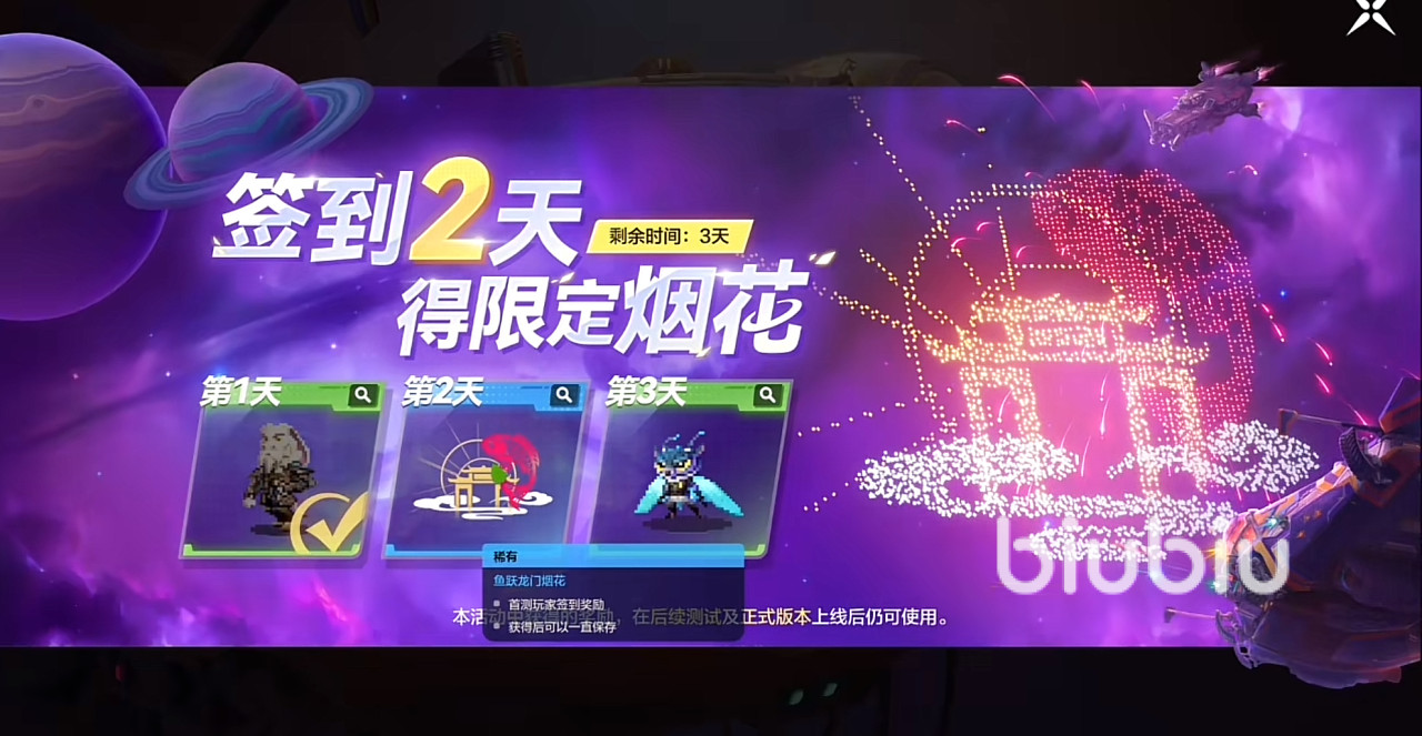 在首次签到时,玩家将获得“喷漆像素萨莫”,采用了复古像素风格,以游戏中的经典角色萨莫为原型设计,色彩鲜明且充满怀旧感。玩家可以在飞船、装备或战斗服上使用这款喷漆,展现自己的独特风格。第二天的签到奖励是“烟花鱼跃龙门”,设计灵感来源于东方神话,燃放时会呈现出绚丽的鱼形光影效果,最终化作一道璀璨的龙门,象征着好运与突破。玩家可以在庆祝胜利、完成重要任务或与队友集结时使用,为游戏中的关键时刻增添仪式感。