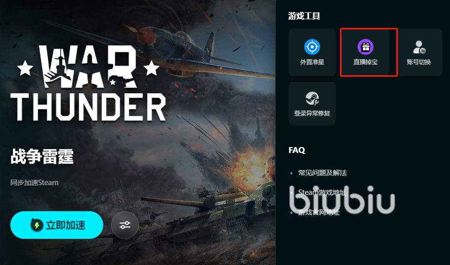 战争雷霆直播掉宝参与途径分享给各位了,反正想要玩好在线玩法,肯定是需要加速网络让自己更稳定的,用的同时还可以直接在biubiu这里找到一件参与直播玩法的工具,就又省了一遍力气,各位使用起来就很舒服了。