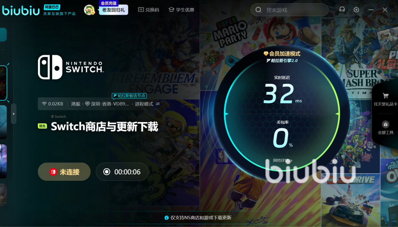 要是这款游戏未来在switch中上线的话,如果想更快下载,并与其他人一同竞技!所以就一定要用上biubiu,如此才能突破下载速率束缚,并安装成功,才能驾驭自己的卡丁车。新用户的话,可获得24小时的免费加速。如果新老用户输入【biubiu不卡顿】,就能额外领取三天免费加速。要是驾驶卡丁车的途中太卡,那很容易撞到障碍物上,从而失去领先的机会。用上加速器后,才能信心十足的躲开所有障碍物。