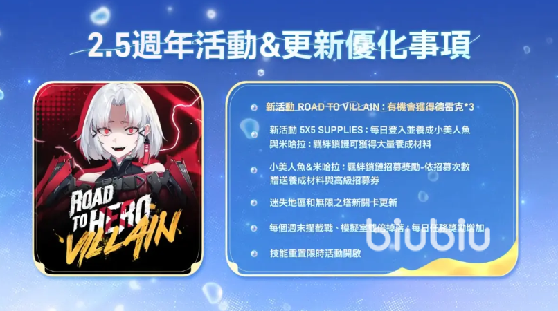 新版活动全面升级:推出"Road To Villain"反派主题挑战,通关可得稀有德雷克x3奖励;新增5x5资源补给包,每日登录培养小美人鱼与米哈拉角色,通过羁绊锁链系统可获取海量养成素材;招募系统同步优化,参与小美人鱼&米哈拉限定卡池,将根据抽卡次数赠送进阶材料与高级招募券;副本方面,迷失地区和无限之塔开放全新关卡,周末拦截战与模拟室开启双倍掉落福利,日常任务奖励全面加码;配套开启技能重置限时活动,助力玩家灵活调整角色培养策略。