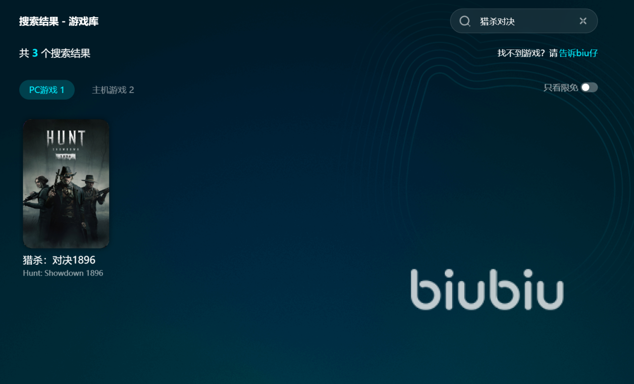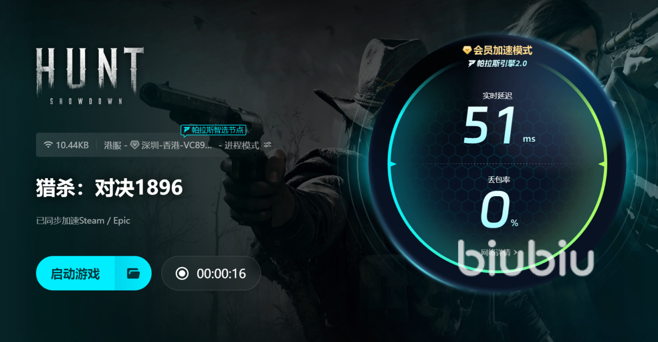 猎杀对决全称是猎杀:对决1896,它的题材还是比较创新的,虽然是狩猎游戏,但是狩猎的对象基本上都是大型的怪物,这些怪物隐藏在黑暗之中,能利用环境伤害玩家, 甚至可能还会使用奇怪的魔法能力去命中玩家,而玩家则需要面对不同的怪物使用特殊武器进行一一消灭,从而包围世界的和平,还可以跟其他玩家合作进行狩猎,提高通关的概率,但是部分玩家在联机的时候很容易掉线或者延迟高,那么就可以使用biubiu加速器来缓解,并且新人在注册后便获24小时免费加速,以及新老用户使用兑换码【biubiu不卡顿】可获3天免费的使用权哦!