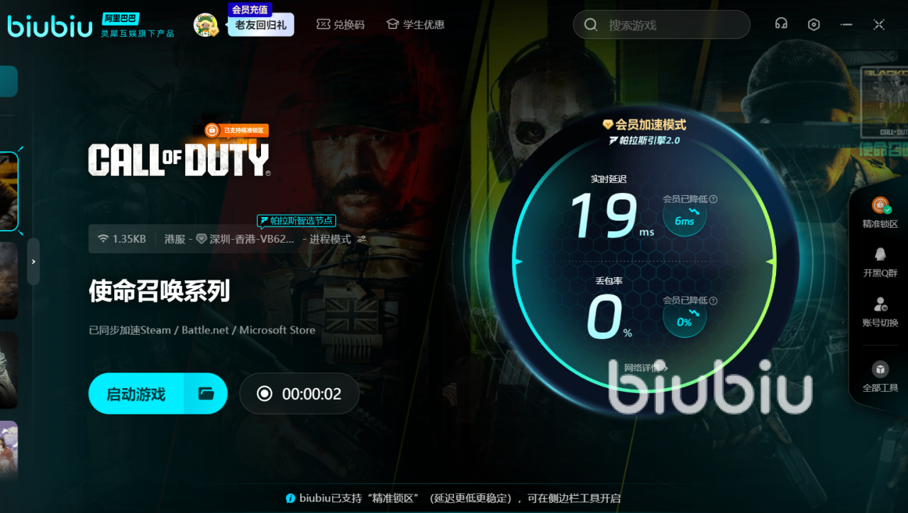 使命召唤系列佳作不断,biubiu加速器的游戏库也十分强大,涵盖系列多款经典作品。玩家只需一个会员账号,就能自由切换加速,随时随地畅玩整个使命召唤系列,性价比很高。