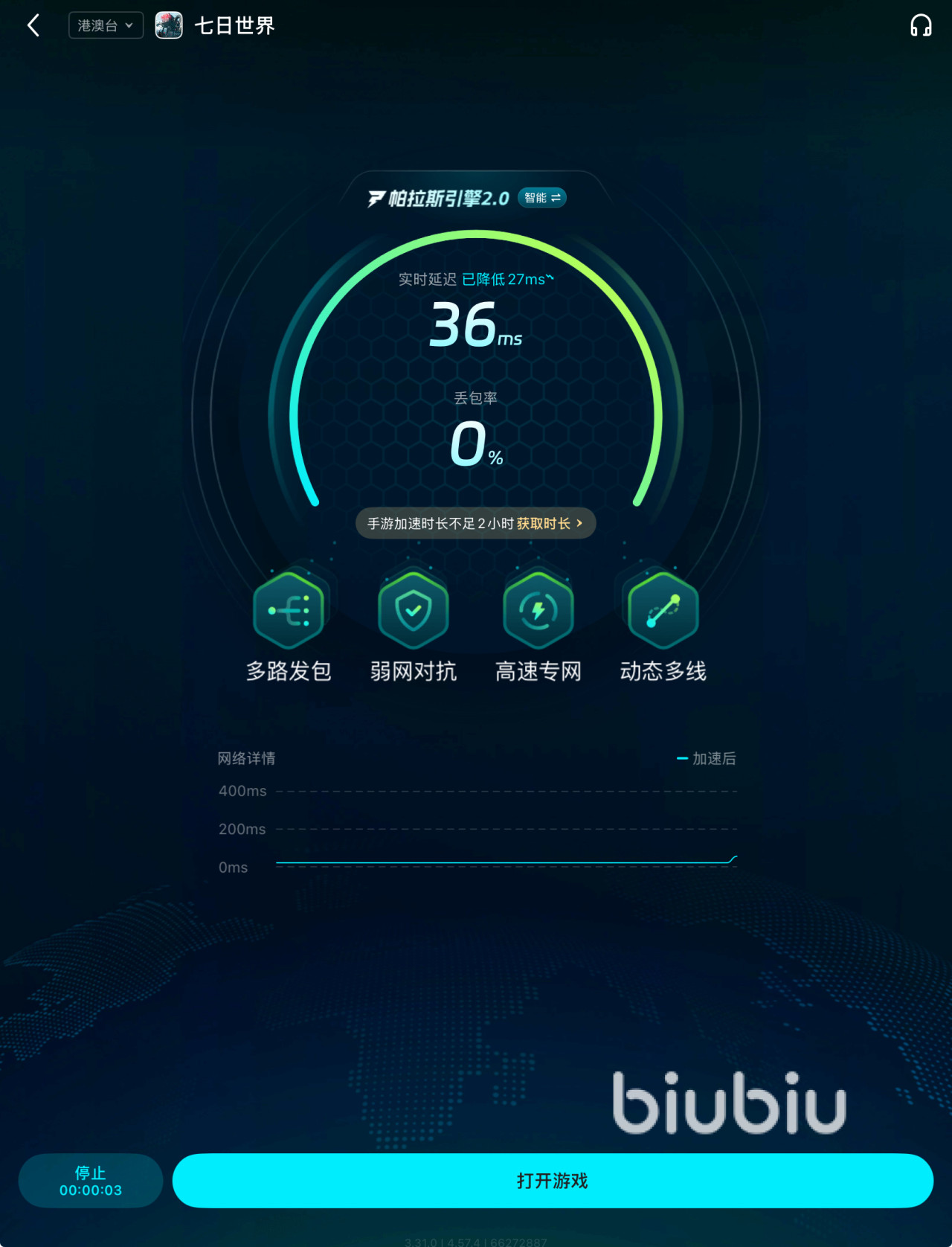 网络卡顿、频繁闪退让《七日世界》国际服之旅险象环生?biubiu加速器支持国际服多区服的加速优化,无论你想闯荡欧美服的激烈战场,还是探秘亚服的隐秘据点,其都能精准匹配专属加速方案,彻底告别延迟困扰。只需打开biubiu手游端,搜索“七日世界”选国际服并点击一键加速,原本卡顿的战斗画面即刻丝滑流畅,连闪退黑屏的“顽固问题”都能轻松解决。