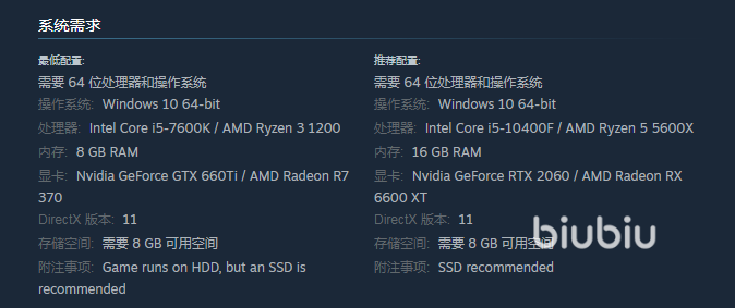 玩家就需要满足最低的配置,例如操作系统可以选择Windows 10 64-bit,在处理器方面也可以挑选AMD Ryzen 3 1200,当然内存也是比较关键的,在内存方面建议选择8 GB RAM。除了这些细节之外,别忘记还需要注重有选择显卡,显卡可以是AMD Radeon R7 370以上。