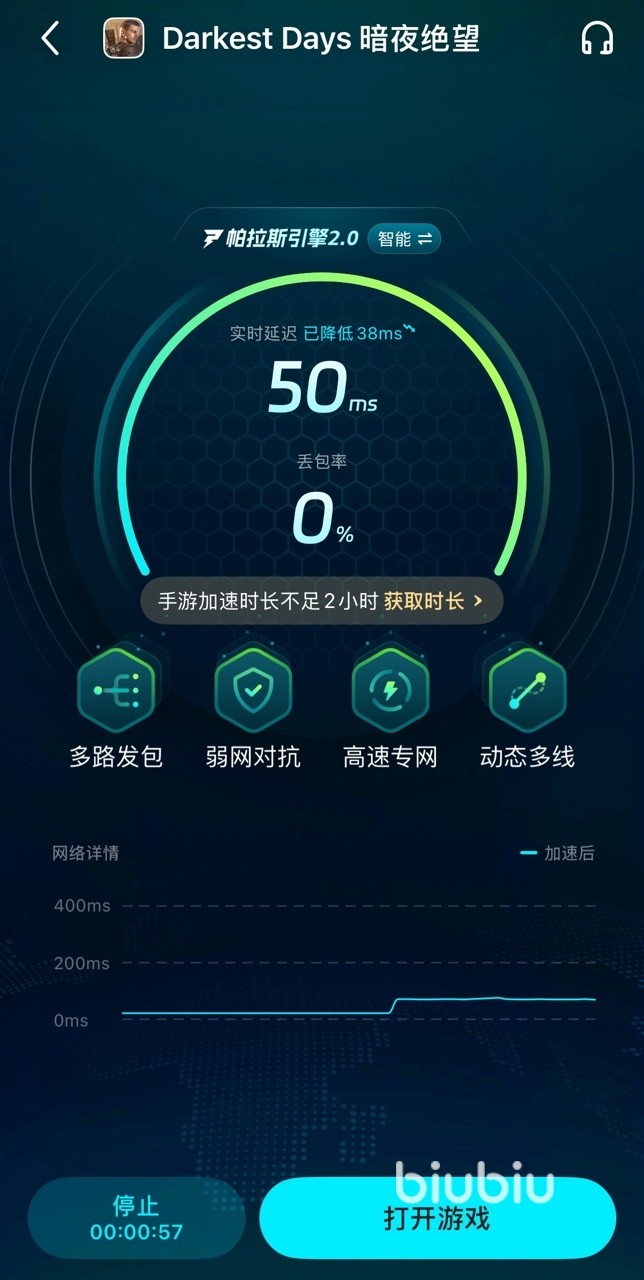 卡顿、闪退这些生存大敌,往往都源自波动的网络连接。还好有Biubiu加速器这支网络护卫队,其智能路由技术能精准狙杀延迟怪,让数据包坐上专线头等舱,开启后就能实时的看到延迟情况了。