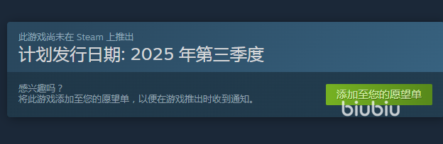 目前游戏上线的时间并不是很确定,大概是在2025年的第三季度会上线。玩家可以先把游戏添加到愿望单,后期就可以收到通知。