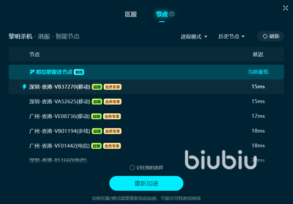 作为一款国际服游戏,远程数据传输极易引发卡顿、延迟,稍有网络波动,便可能让逃生者在关键时刻错失逃脱良机,或是让杀手的致命一击“慢人一步”。掉帧、卡死、延迟等网络问题,不仅会让逃生者的逃生计划功亏一篑,也会让屠夫的控场节奏被打乱。此时,就很需要biubiu加速器的优化。