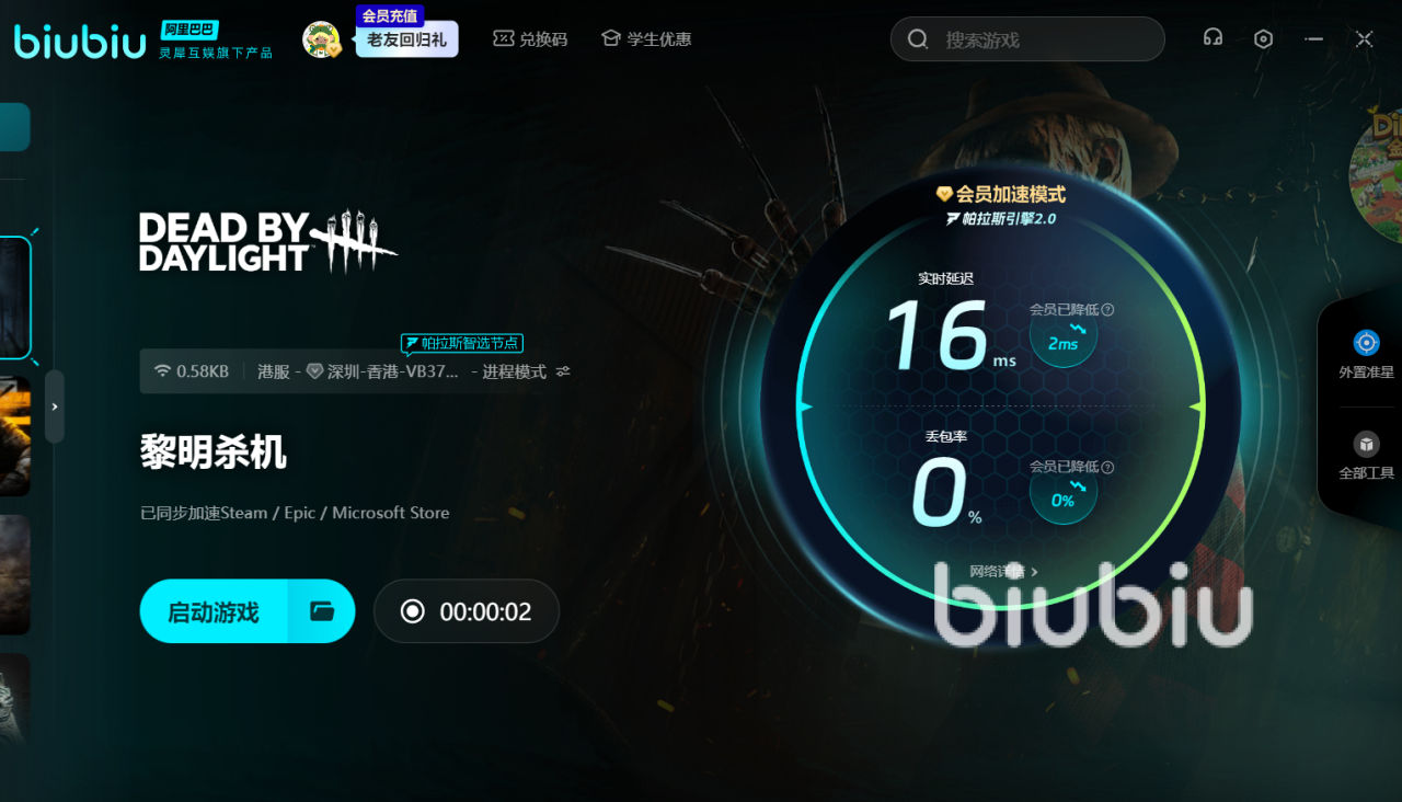 玩家只需在biubiu平台搜索栏输入游戏名,即可一键直达包括国际服各大区、Switch主机平台在内的多版本加速服务,告别跨区网络困扰。得益于biubiu加速器的优化,玩家无论是扮演逃生者,还是化身屠夫,利用稳定低延迟规划出高效追击路线,实现精准猎杀,都变得更为轻松。
