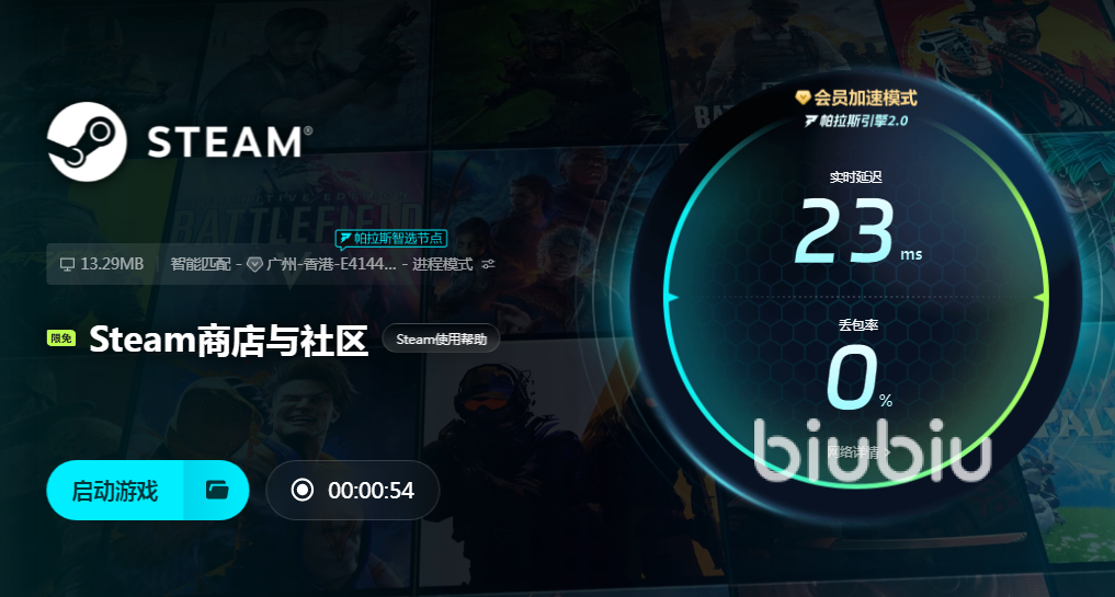 大家可以先准备好biubiu加速器,等游戏发售以后就不用手忙脚乱找加速器了,点击上面的按钮就能看到biubiu下载链接。现在注册新用户即可得到24小时免费加速,站内搜索steam找到加速资源,既能加速商店和社区,让大家购买游戏更顺畅,又能加速远程同乐,还可以使用同步后的网速来玩游戏哦。