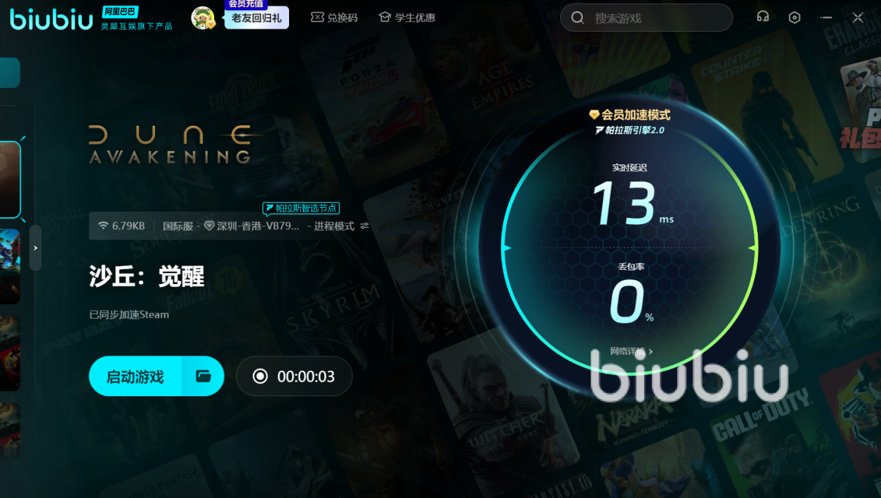 在福利方面,新人用户首次注册登录biubiu,即可免费领得24小时加速时长;而不论你是新用户或者是老用户,只要输入【biubiu不卡顿】的兑换码,就能额外获得3天的加速时长福利,轻松开启畅快游戏之旅。