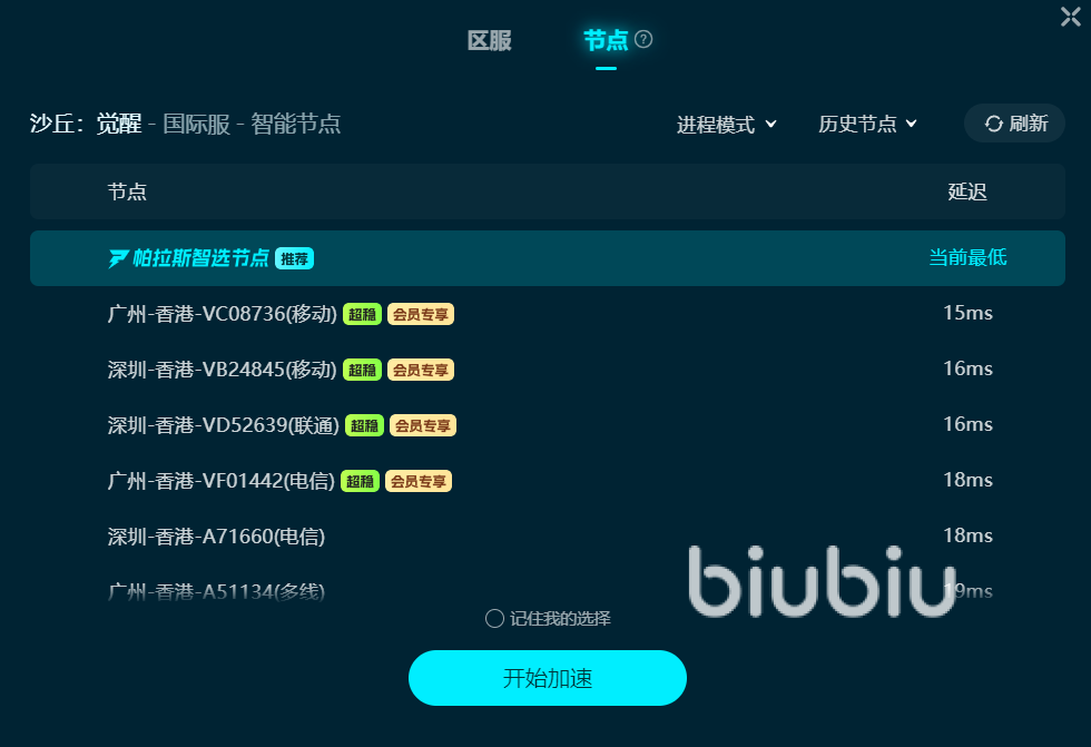 biubiu依托自研帕拉斯引擎2.0的技术,运用智能路由与节点的双重优化技术,从底层解决网络卡顿问题,实现超稳定低延迟。无论是酣畅淋漓的团战,还是自由探索的冒险,都能助你告别延迟困扰,畅享极致流畅的游玩乐趣。