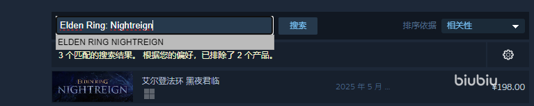 在steam平台艾尔登法环黑夜君临的正式英文名为《Elden Ring: Nightreign》,当然也可以输入中文名进行查找,中文名字叫做《艾尔登法环 黑夜君临》。建议直接复制,以便精准检索,此外,游戏支持简体中文界面,玩家无需担心语言障碍。