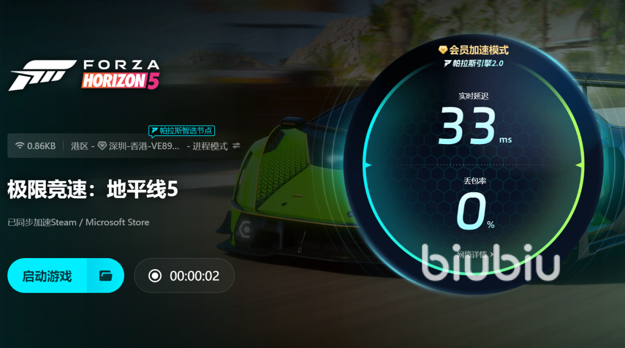 2025年04月27日 15:23 来源:物抗次金鱼王极限竞速地平线5黑屏闪退卡顿延迟丢包怎么解决?在这场速度与激情的较量中,选择一款高效的加速器是每位玩家的必修课。而biubiu加速器则是游戏世界中的“极速引擎”,专为玩家定制,让你告别延迟与卡顿,畅享零负担的竞速体验。biubiu加速器通过精准优化,消除网络波动,确保你在激烈的竞赛中始终保持领先优势。不论你是极速赛道的霸主,还是随心探索的自由玩家,biubiu都能以超凡的加速效果,助你实现极限挑战。而且,biubiu不仅仅是加速,更像是你的秘密武器,让你在极限竞速地平线5的世界中始终掌握主动权。想要一场无缝衔接的比赛?biubiu加速器,值得你拥有!