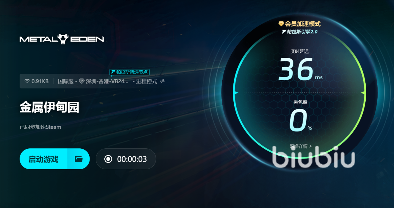METALEDEN在探索地图的时候,会遇见很多的机甲敌人,一部分的机甲敌人血量非常地厚,而且还能召唤大量的杂兵,依靠个人的力量是无法打过去的,这时候就可以选择多人联机模式,但是联机的时候很容易卡掉线,有时候会出现延迟高的问题,根本无法正常游玩,,那biubiu加速以后能稳定低延迟问题,可以提高双方的游戏体验,而且biubiu加速器是可以支持多个渠道服的,包括了国际服以及各类型的外服等。