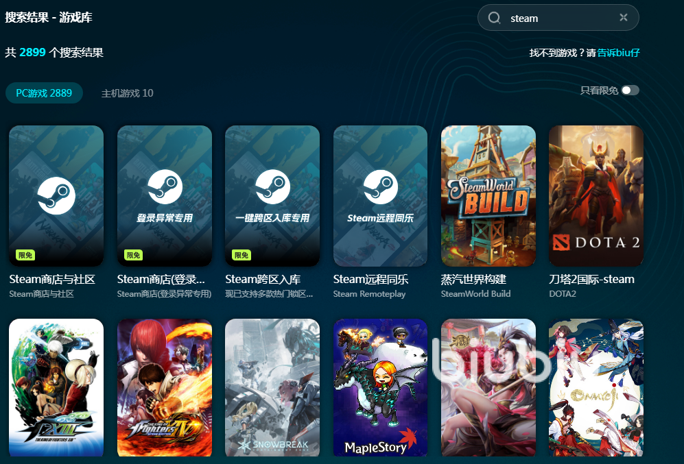 小编建议大家使用biubiu加速器来玩叛逆神魂,正好现在有免费试用的活动,点击上方按钮获取链接下载以后立即注册新用户,就能马上享受24小时免费体验。用户搜索steam以后跳出加速资源,加速steam成功就能打开叛逆神魂玩了,经过优化以后网络特别流畅,玩游戏不会有延迟跟卡顿。