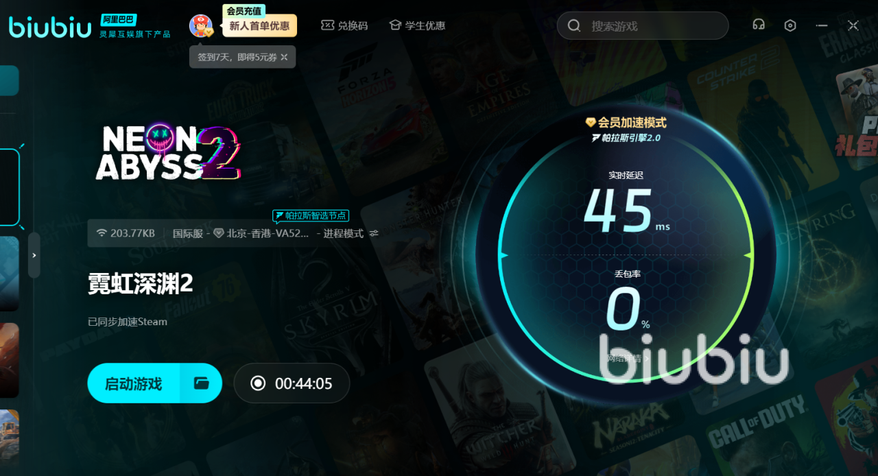 游戏还新增了“哈基宝”融合系统,孵化4个低级蛋可合成拥有特殊技能的“超级哈基宝”(如治疗光环、范围冰冻),但合成前的蛋作用有限,需策略性规划资源。而联机玩法,推荐用biubiu加速器来降低延迟,它采用动态多线技术,“帕拉斯引擎2.0”系统可精准定位《霓虹深渊2》服务器,自动切换最优线路。即使是亚服玩家与欧美队友联机,延迟也可稳定在60ms以下。