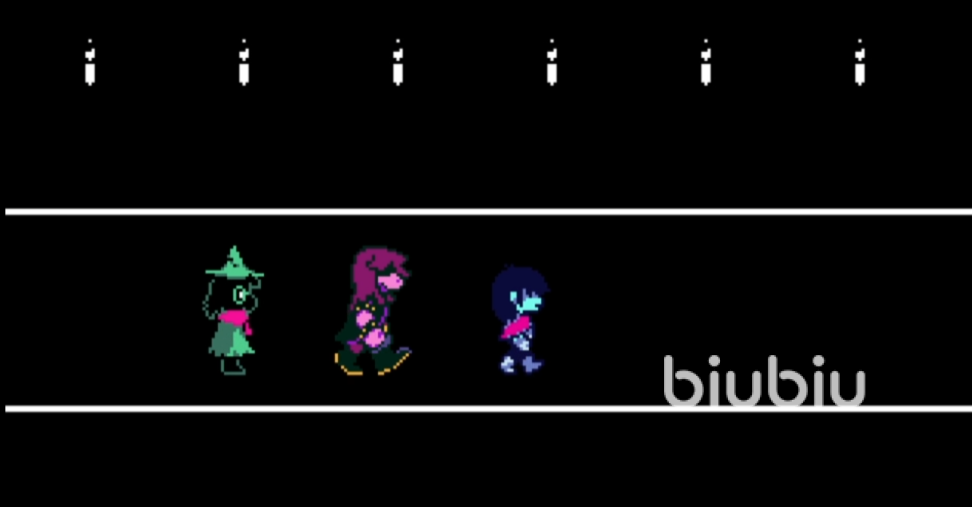 第一轮国王是给出来无序的攻击,从右往左,我们操作红心躲过还是容易的。这一轮攻击完成之后,国王就会召唤四面八方飞射过来的白剑射击红心,这就需要我们上下左右调位才可以通过了。然后还会有小关卡穿拆在里面,当界面出现其他红心的时候,我们要操纵自己的红心去触碰。