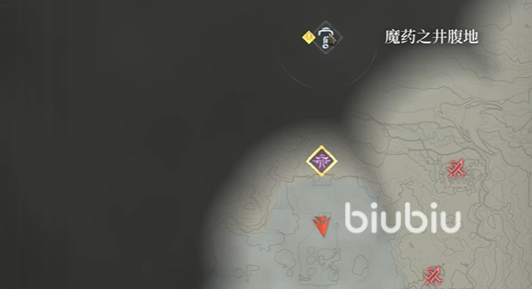 在雪山的魔药之井附近,该地区弥漫着浓厚的瘴气,环境十分恶劣,标记一下图中的点位,然后从塔尖直接飞过去就即可。一路上山,周围若有小怪可以不用理。