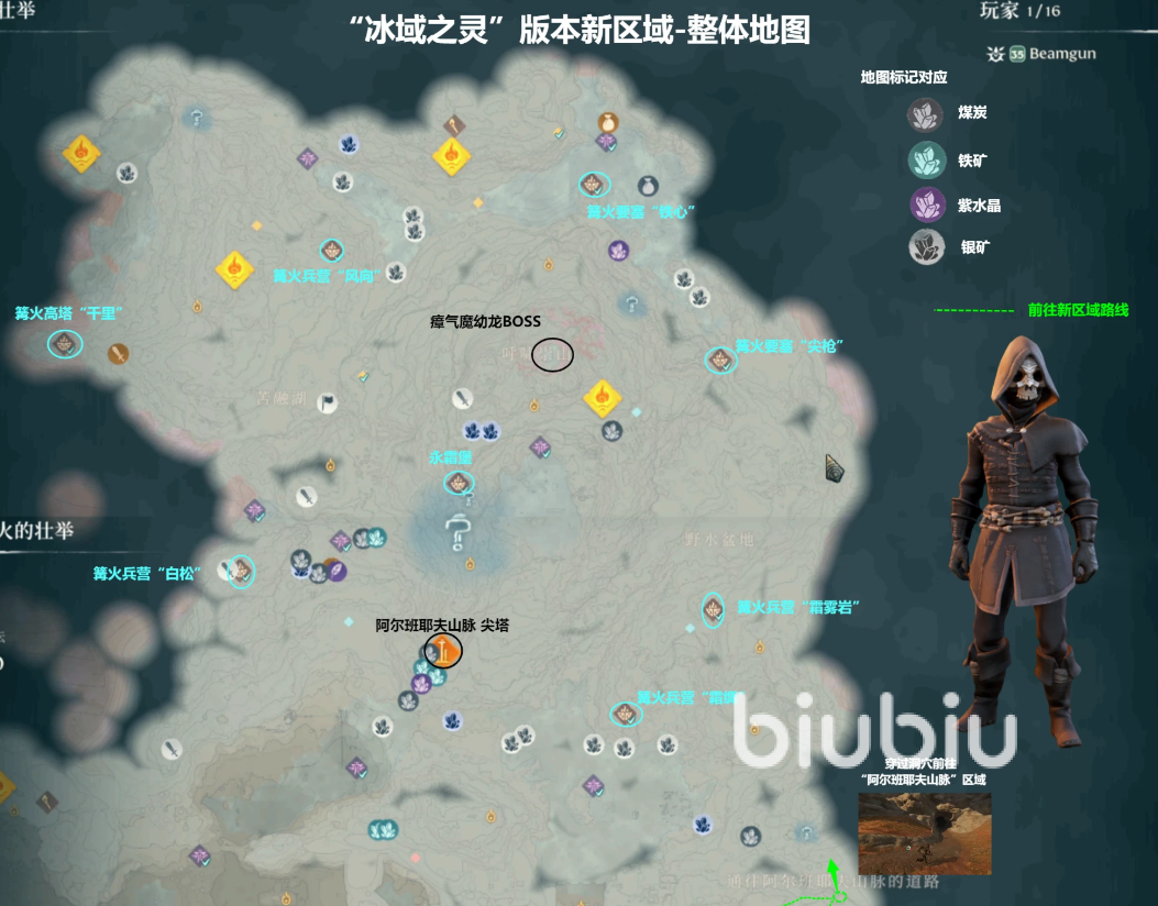 瘴气魔幼龙也就是瘴气魔荧龙,其位置位于雾锁王国中的崇山城,玩家需要点燃下图中标注的全部8个篝火(蓝色字体),地图BOSS“瘴气魔幼龙”才会出现。魔荧龙是崇山城的守护者,具备强劲的毒素和神秘的荧光能力,是游戏中不容小觑的强大角色。