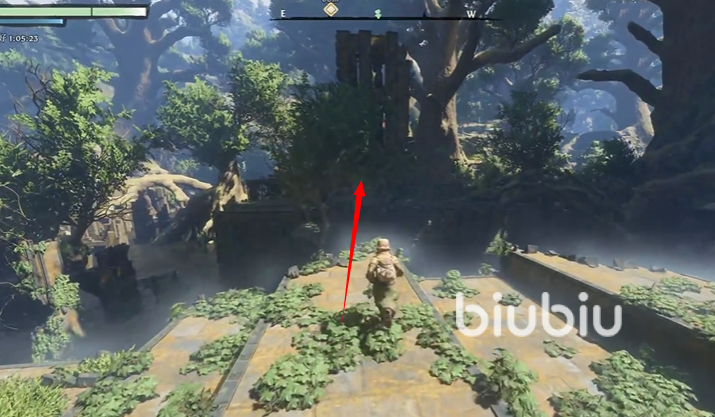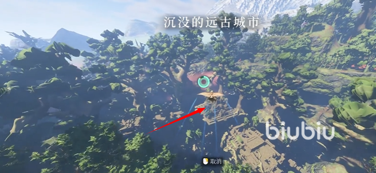 然后往“沉没的远古城市”方向跑。从塔尖直接向着N方向飞下去。