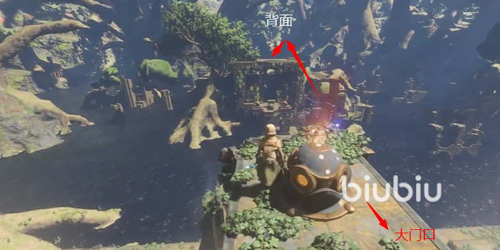 到了下图标注的这个位置,就是“吟游诗人地点”。想要打开这个大门,需要在附近的建筑群中找到3个解锁位置,玩家需破解机关之后才能深入地下。
