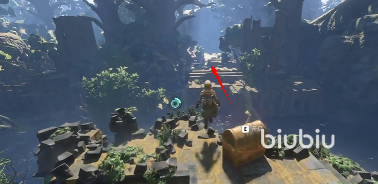 第三个位置:继续往E方向走,也是直接打开滑翔翼飞过去,不用飞到最高台上,在最高台旁边矮一些的台子上。