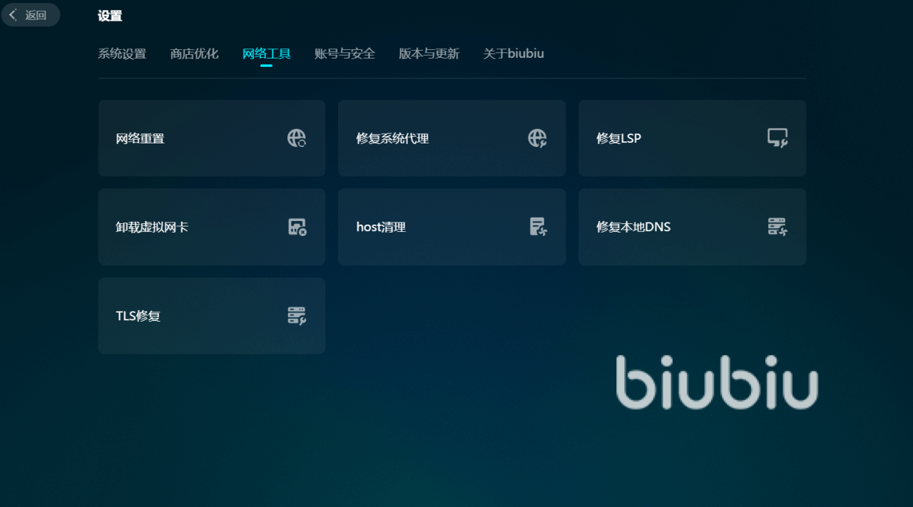 biubiu的强大不止于加速,其内置的网络修复工具,能自动优化电脑环境、重置网卡,轻松解决游戏加速失败、网页无法访问等难题。无论是网络连接异常、丢包卡顿,还是其他7大类网络故障,biubiu都能一键搞定。
