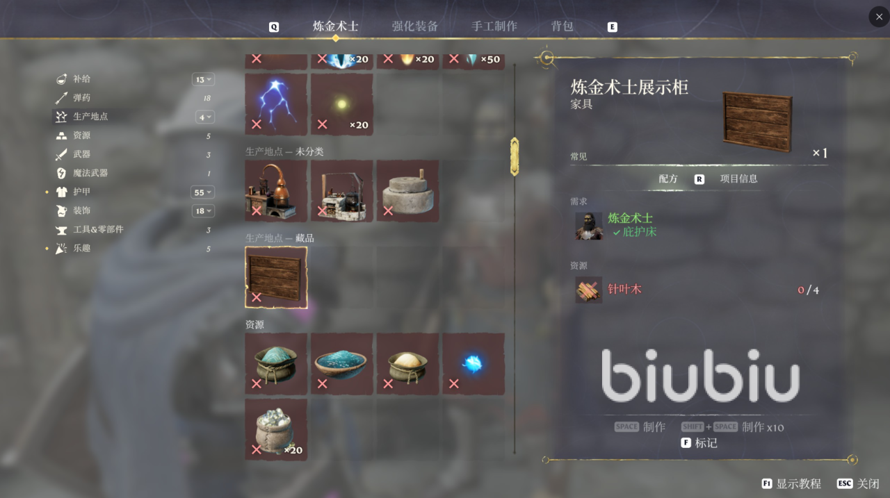 首先需要说明的是,因为【炼金术士被撕裂的壁画】这个任务是有指引的,所以大家不需要进行寻路,只要按照指示前往任务地点即可。到达之后,需要大家先在场景内找到炼金术士这名NPC,对话后开始制作展示柜。这里需要用到的道具是四个针叶木,可以通过平时的探索获得,这样玩家们好奇的画框如何制作问题就圆满得到解决了。制作完任务需求的道具后,继续在当前的场景中任意寻找一个支持摆放的位置,贴到墙上,靠近之后按下E键就可以完成操作了。这时会弹出一个页面,其中有几个空白的栏位,选择玩家们背包中已经拥有的壁画碎片就能顺利完成啦。