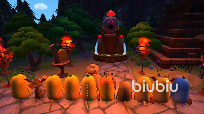 玩家将引导谜姆在开放世界中展开探索,收集资源建设村庄、扩展区域,并通过繁衍机制创造数千种独特后代——谜姆共有7大种族,其外观与能力会随行动动态变化,例如频繁跳跃的个体可能长出羽毛,而擅长狩猎的则会长出尖牙。游戏弱化战斗元素,更注重策略性采集与建造,支持“普通”与“困难”双难度,后者需应对饥饿谜姆破坏设施的挑战。为了能专心应付饥饿的谜姆,小编建议大家在游戏时开启biubiu加速器。