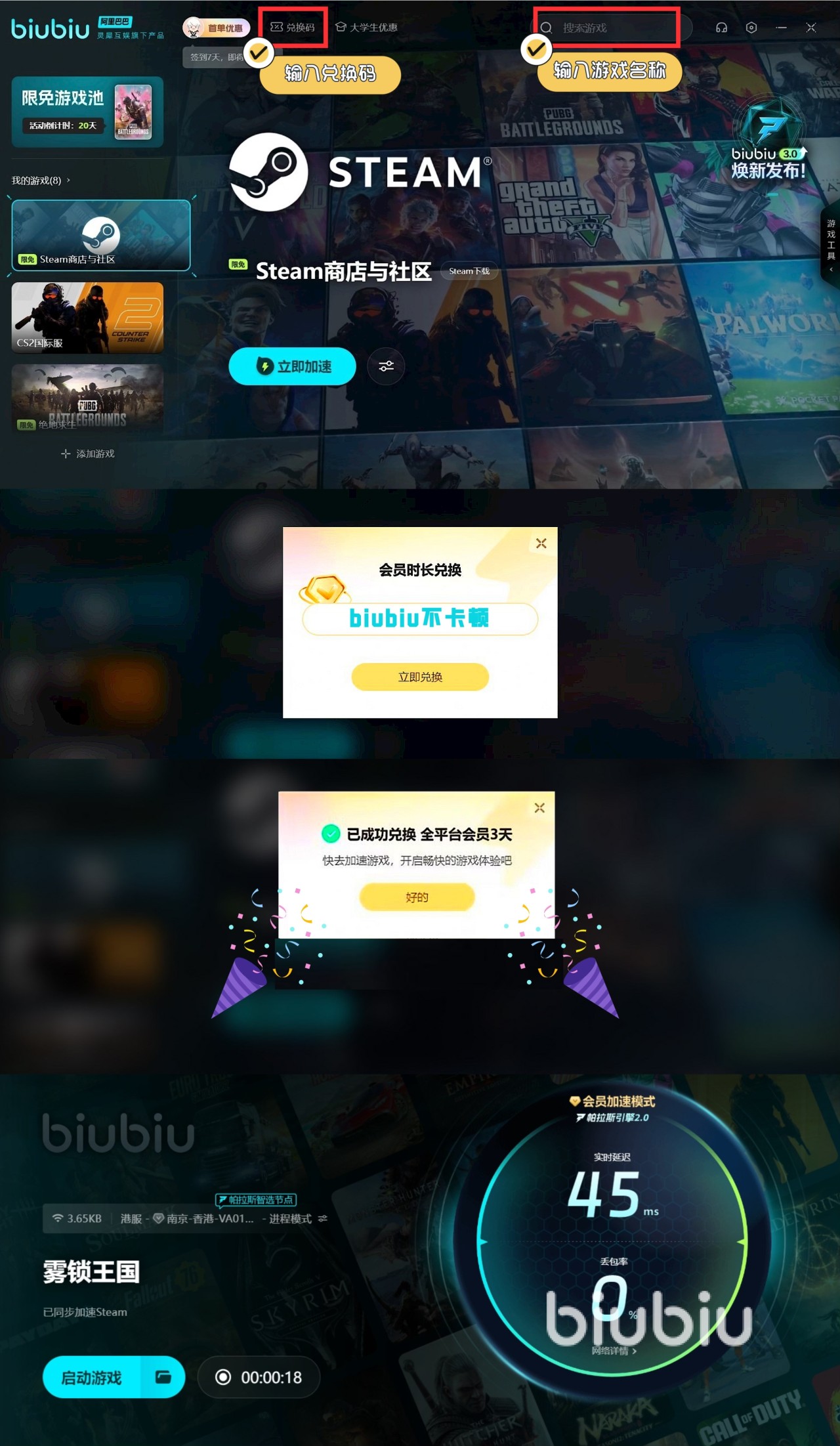 在最后再给玩家们介绍下怎么在biubiu上领取相关加速福利的过程: