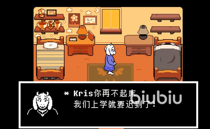 克里斯是被托丽尔(Toriel)收养的人类,哥哥艾斯利尔(Asriel)的优秀对比其“怪异”性格。家庭破碎(父母分居)、垃圾桶中的鲜花等细节暗示家庭关系的复杂性。克里斯的“容器”设定(灵魂与身体的分离)逐渐显露出反抗玩家的意志,尤其在第二章结尾拔刀自残、创造新喷泉的震撼场景。