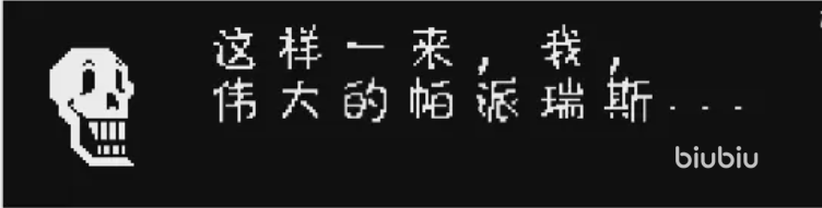 因此《三角符文》游戏中只有斯潘顿,而且是作为一个重要NPC存在的,后期还会变为隐藏BOSS,斯潘顿NEO。而papy小天使在本作已经开放的一二章中暂时没有登场。只有在小镇上拜访NPC的时候,调查杉家会遇到sans——另一个骷髅,也是papy小天使的兄弟,此时会听到骨头的摩擦声,应该就是papy了。