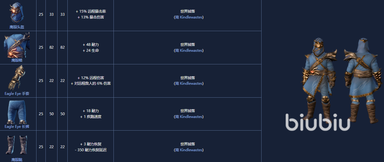 12. 鹰眼套装,25级的,从南方 Kindlewastes 中获得。