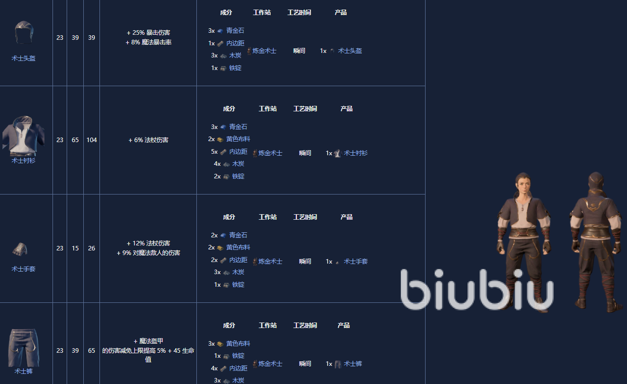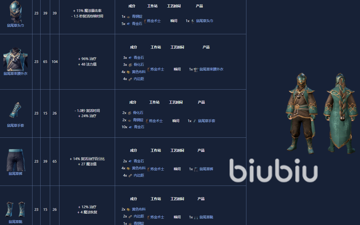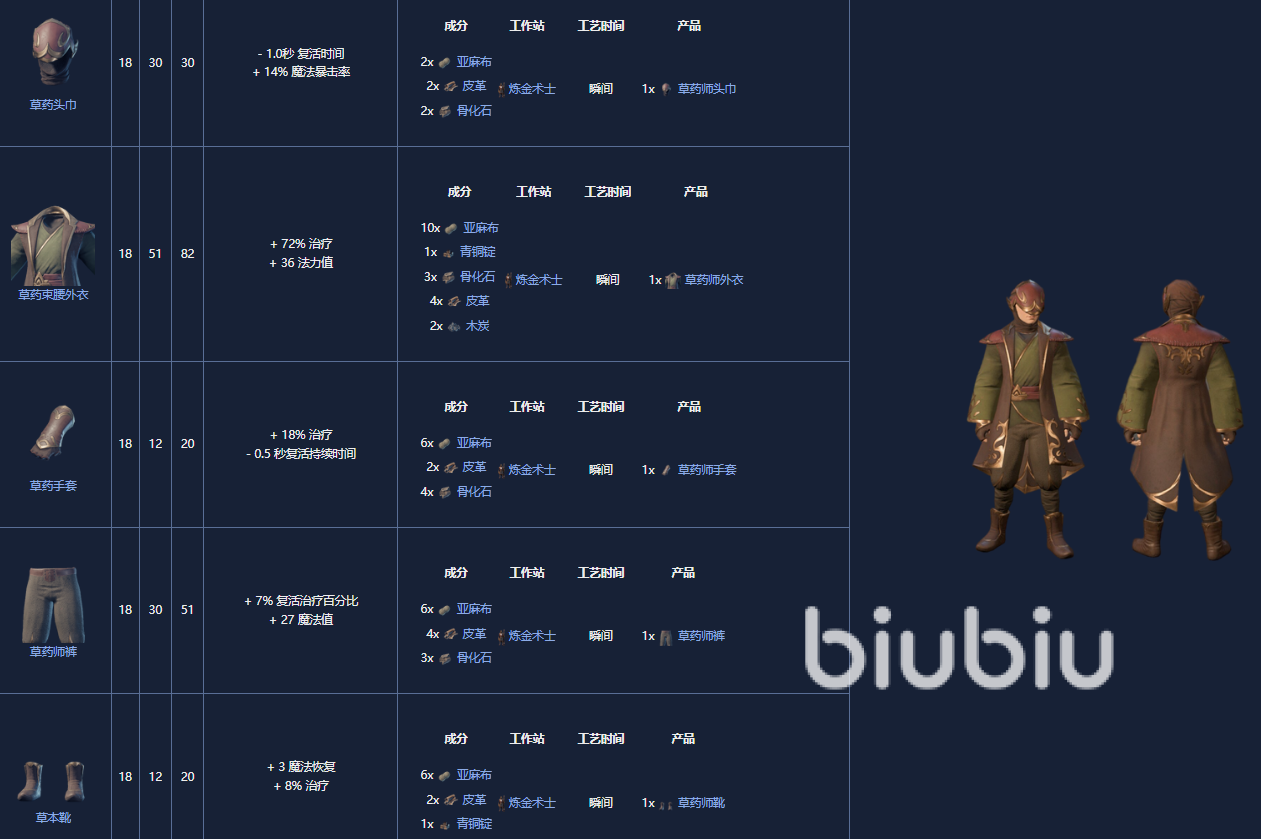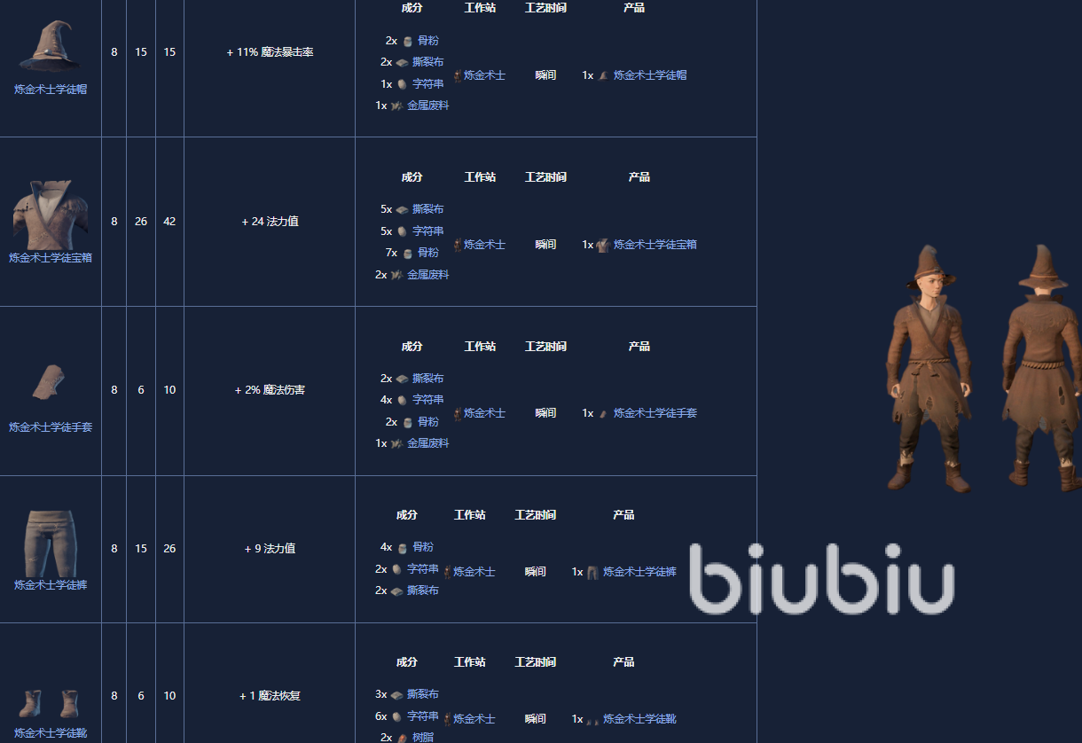 1.炼金术士学徒套装,8级,可以由炼金术士制作。