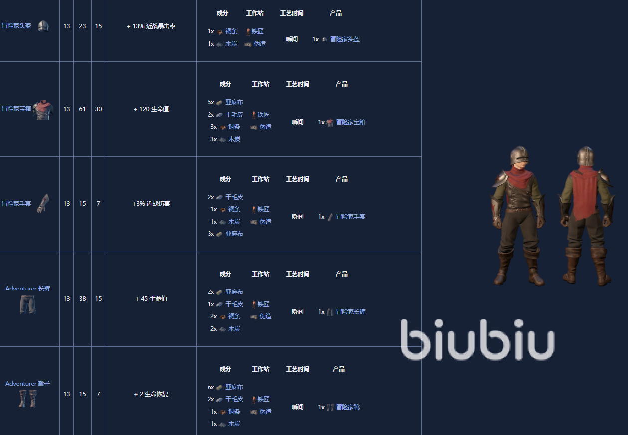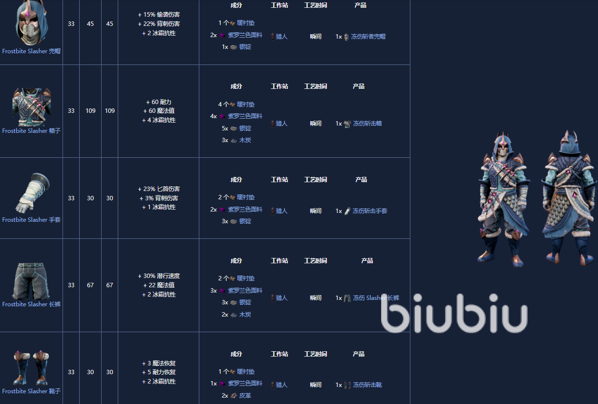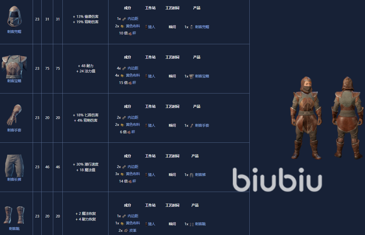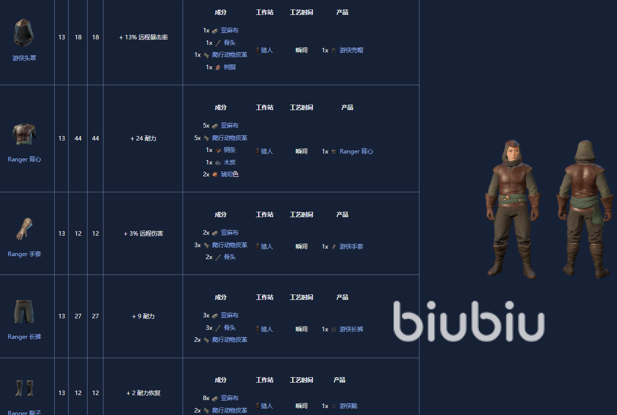 5. 神枪手套装,18级,制作需要一个晒黑站。