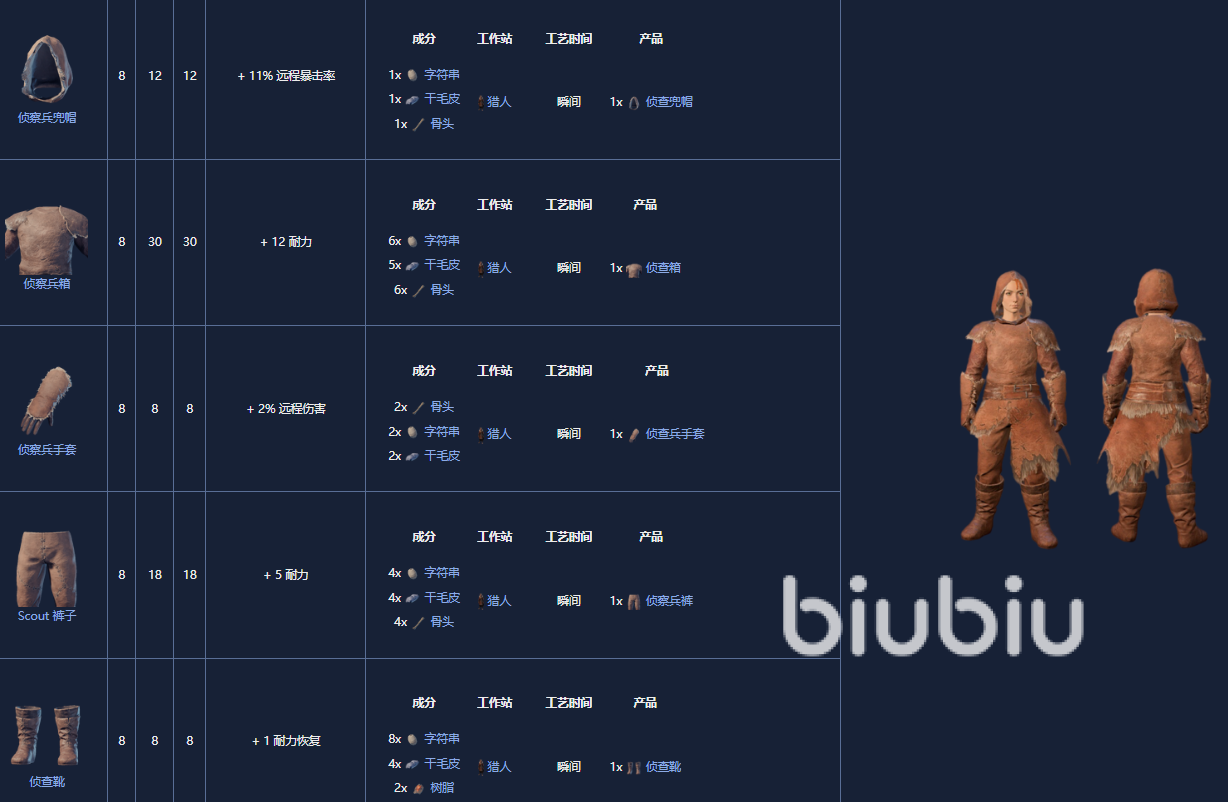 1. 侦察套装,8级,可制作