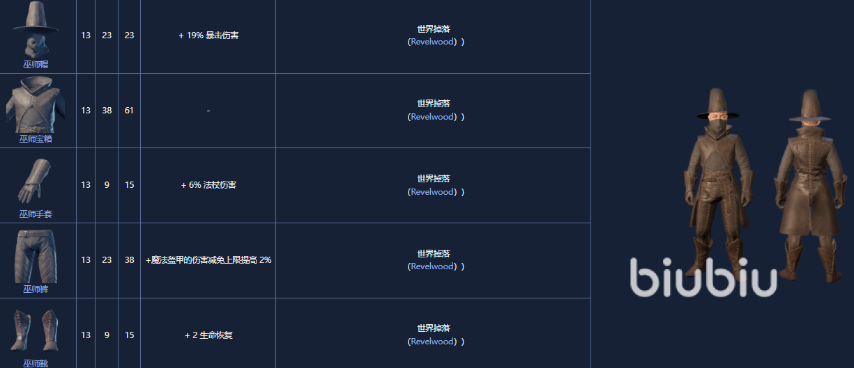 4. 巫师套装,13级,Revelwood中随机获得