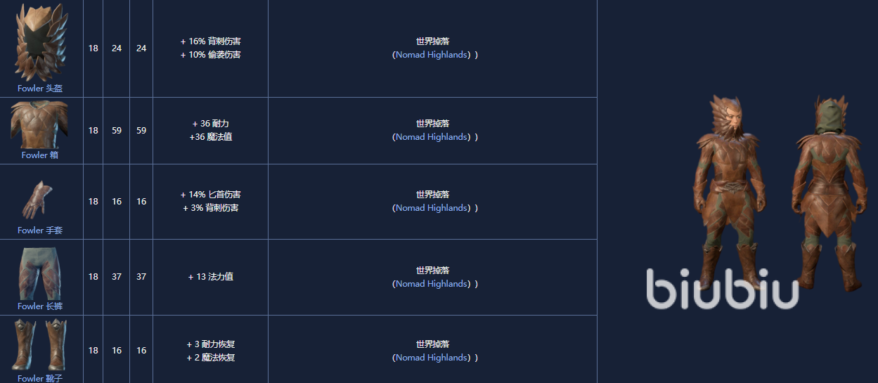 7. 福勒套装,一套18 级的盔甲套装,可以从Nomad Highlands 的宝箱或Boss中获得。