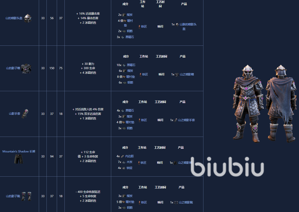 17. 山影套装,33级,可制作。