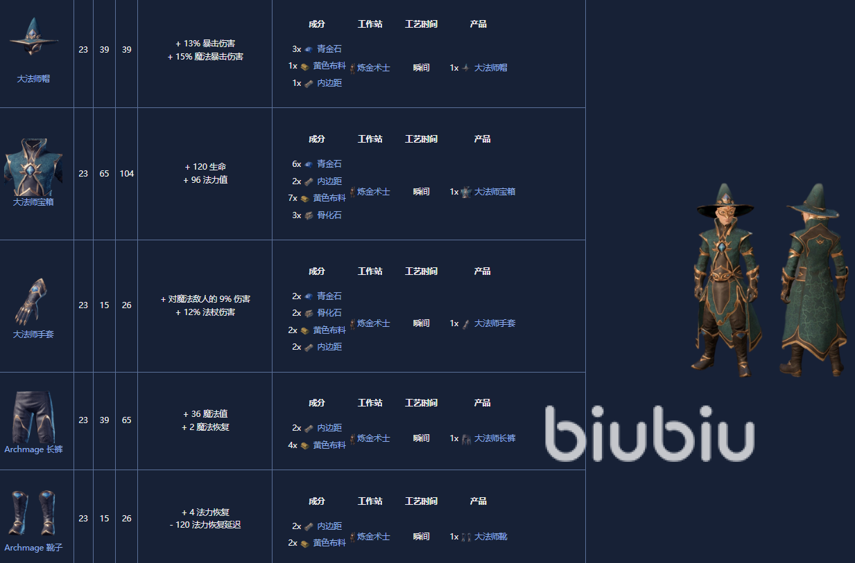 8. 大法师套装,是一套23 级的护甲套装,可以由炼金术士制作。它通过首次获得Lapislazuli来解锁。
