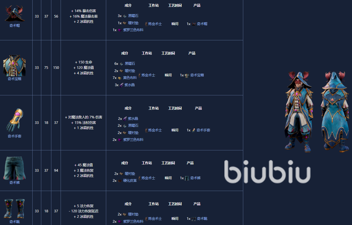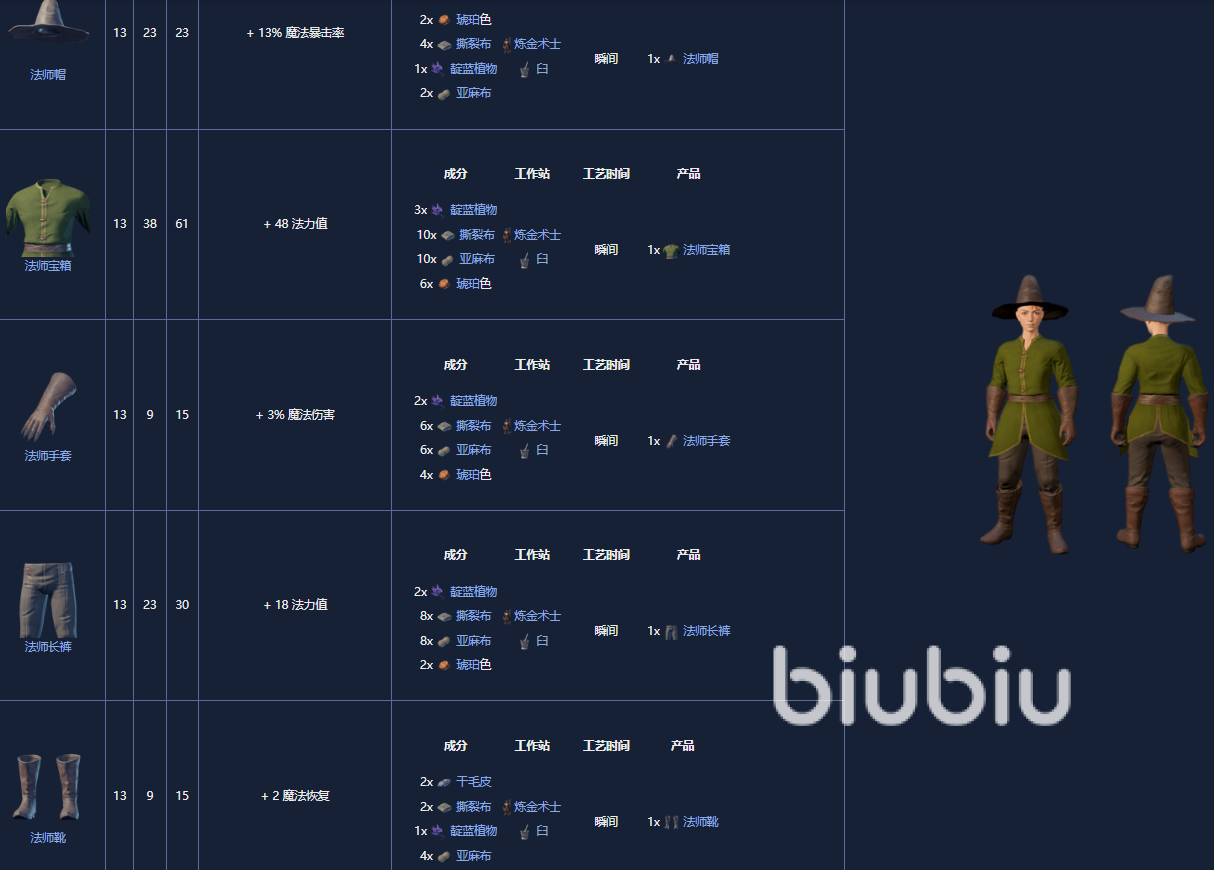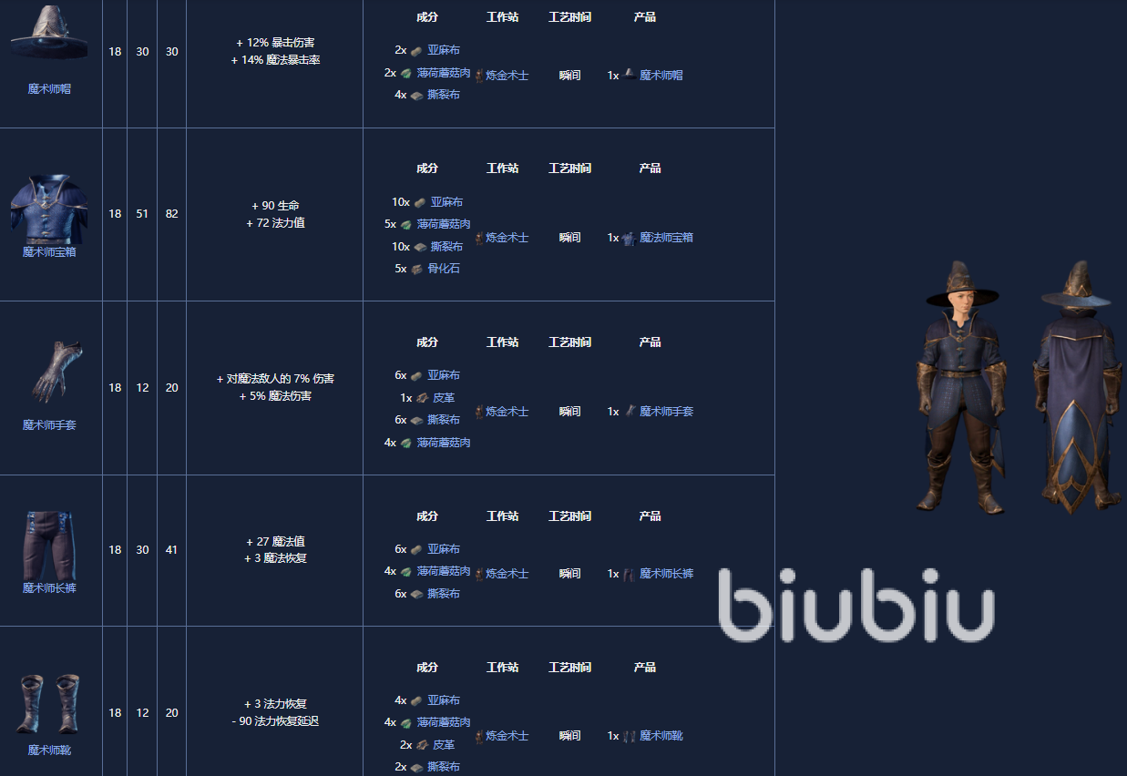 5. 魔术师套装,18级,首次通过薄荷蘑菇肉来解锁