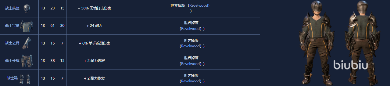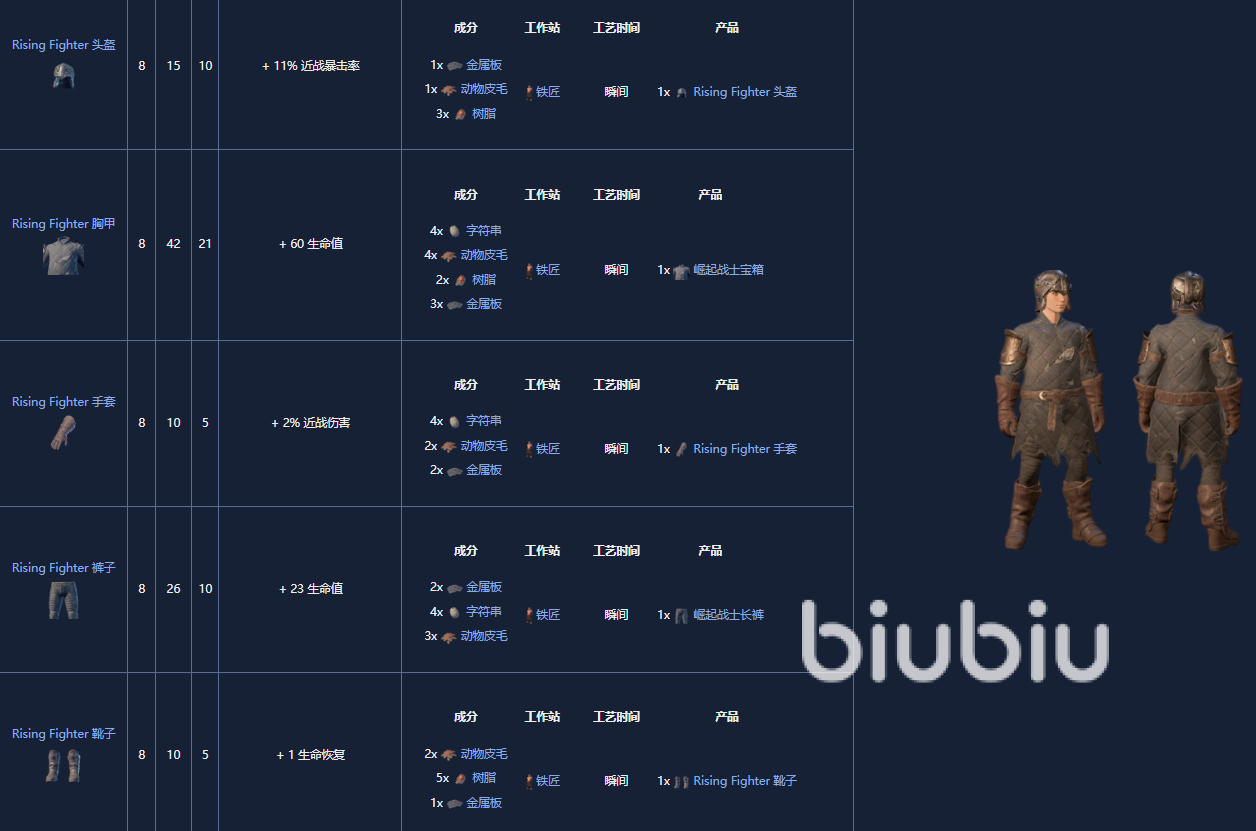 2. 崛起的斗士套装(rising fighter),8级,可由铁匠制作