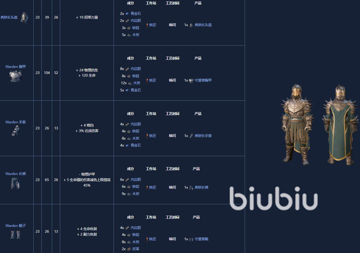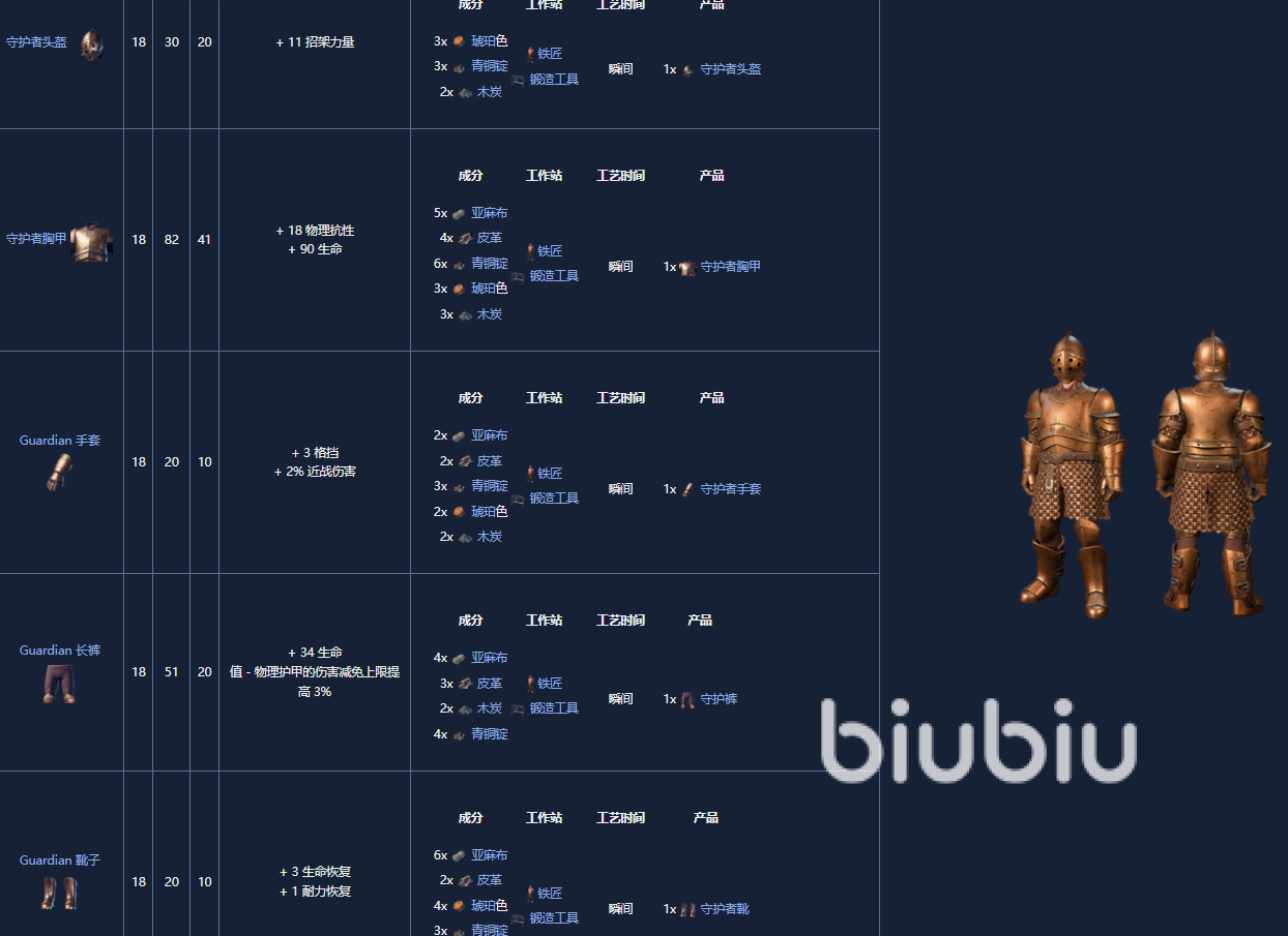 7. 守护者套,18级,如果放置了锻造工具,可以由铁匠制作。它是通过获得锻造T具作为任务The Blacksmith's Request的一部份来解锁的。