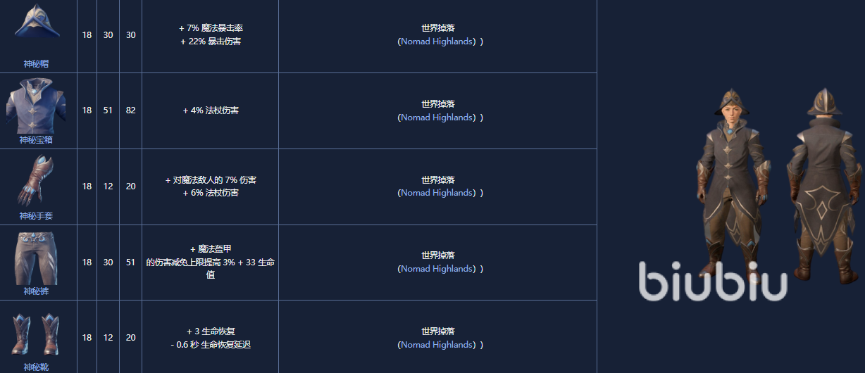 7. 神秘套装,18级,通过Nomad Highlands 获得。