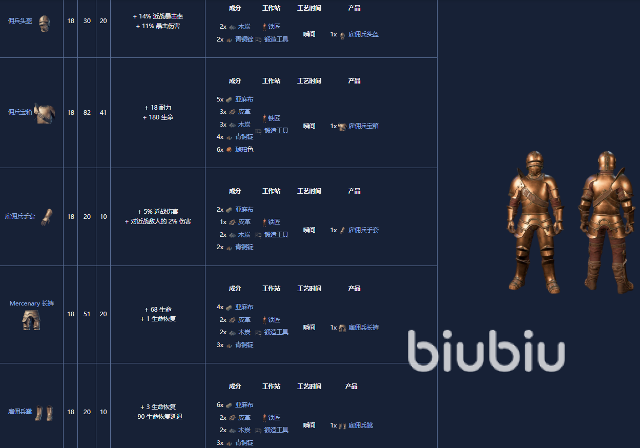 8. 雇佣兵套,18级套装,可由铁匠制作。