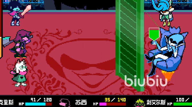 完成主线任务后,去做支线任务解救Noelle,首先进入冷冻仓库,与Noelle对话时选择“鼓励她坚持自我”,避免其黑化。同时调整控制器至“0°C”打开通路。这里的Boss战Berdly打法依旧以和平路线为主,Ralsei继续持续使用群体治疗技能,保证血量。而Kris选择“行动”→“劝说”,削弱Berdly战意。最后当Berdly召唤冰柱时,选择“提醒他注意危险”直接结束战斗。
