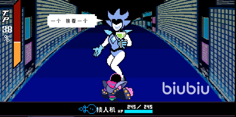 创建好角色进入游戏,剧情会自动与Susie组队,组队后跟随她进入Cyber City,这里会有一些与NPC的对话选项,这里必须选择友好选项,如“同意计划”“鼓励合作”。Boss的话则需要一定得策略,Ralsei需要使用安抚降低敌意,同时Kris选择“行动”→“赞美”或“防御”,不要去使用伤害技能。等到Tasque Manager召唤小Tasque时,对每只小怪使用“宽恕”即可结束战斗。