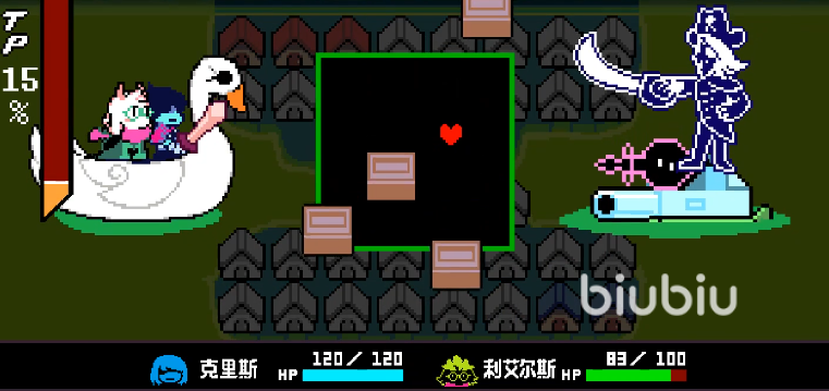 完成初始区域的任务后,我们就要去做主线任务来获取“车票”,首先要协助Swatchlings整理书籍,进入“颜色迷宫”,与所有Swatchlings对话,然后按颜色分类书籍,遵循红→红书架、蓝→蓝书架规律即可,完成后获得车票和隐藏道具“彩虹石”。这里会有一个隐藏Boss战Spamton,不一定非要打,触发的话也很简单,在垃圾场找到地图右下角的隐藏电话亭,接听电话后触发战斗,和他打依旧是不伤害的原则,Ralsei全程使用“治愈祈祷”维持血量,Susie使用“威胁”加速敌人宽恕即可。战胜他之后可以获得DealMaker护甲,这是一个收藏品,无实战用途。